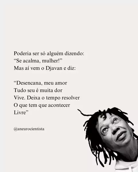 "Precisamos de mais Djavans na vida! Concordam? Desencana, meu amor... e deixa a vida fluir! ✨ Reflexão do dia." #viral #fy #KwaiBrasil #foryou #djavan