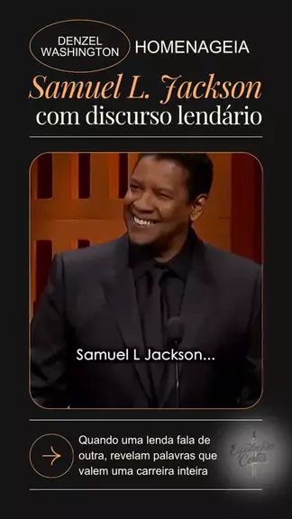 Denzel Washington homenageia Samuel L. Jackson com discurso lendário Quando Denzel Washington sobe à tribuna para homenagear Samuel L. Jackson, não é apenas um discurso — é um encontro entre duas lendas vivas. Palavras que carregam respeito, história e admiração verdadeira. Denzel revela o quanto Samuel marcou gerações e inspirou o cinema com talento, disciplina e propósito. ⚔️ Cada frase é uma lição sobre gratidão, amizade e legado — virtudes que constroem verdadeiros gigantes.