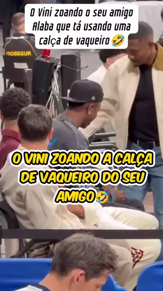 O Vini morrendo de rir com o seu amigo usando uma calça de vaqueiro!!!🤣🤣🤣 . . . . . #Futebol #esporte #realmadrid #championsleague #vinijr