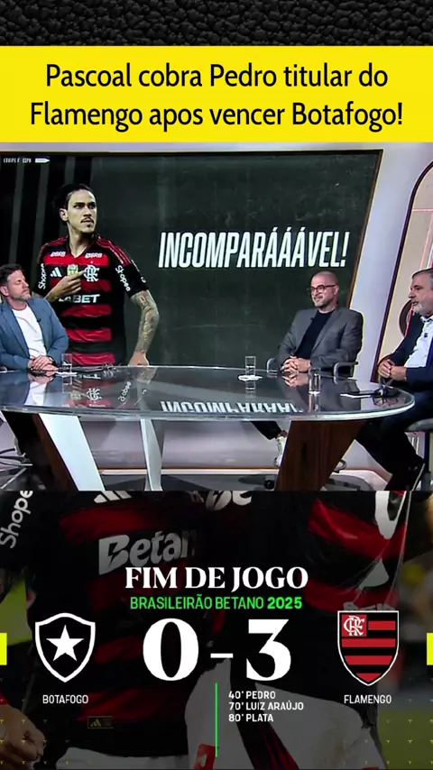 Pascoal cobra Pedro titular no Flamengo contra o Palmeiras apos vencer o Botafogo! #BotafogoXFlamengo #flamengoxpalmeiras #pedro #brasileirão2025 #esporteviral