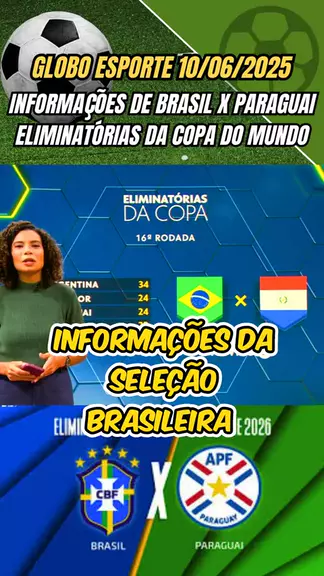 Globo Esporte 10/06/2025 informações de brasil x paraguai eliminatórias da copa do mundo #eliminatorias,#seleçãobrasileira, #brasilxparaguai #futebol #esporteviral