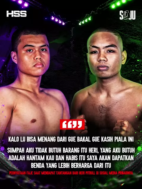 Perseteruan antara Heri Pitbull dan Faje tampaknya semakin memanas. Keduanya sudah beberapa kali saling melempar psy war melalui akun media sosial pribadi. Hal ini tentu memicu perhatian para penggemar dan menambah panas suasana di antara keduanya. Apakah perseteruan ini akan benar-benar berlanjut ke atas ring? Kita tunggu saja #holywingssportnight #holywingssportshow
