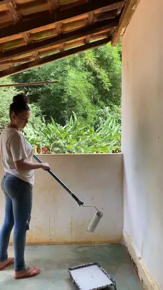 Reformando a pintura da parede da varanda e fiz bolo de abacaxi pro café da tarde #vlog #reforma #sitio #rotina #food