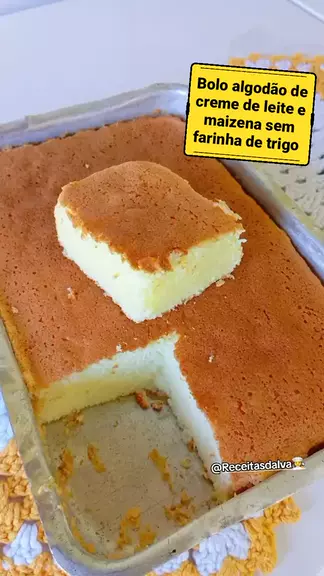 Bolo algodão de creme de leite e maizena sem farinha de trigo! #Receita #fyp #foryo #bolo #bolocaseiro