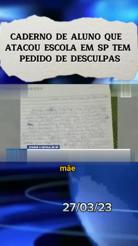 Aluno revela em caderno a intenção do ataque que aconteceu em SP Fonte recordnews Data 27/03/23 #noticia #fy #EstrelaDeFamília #ataque #sp