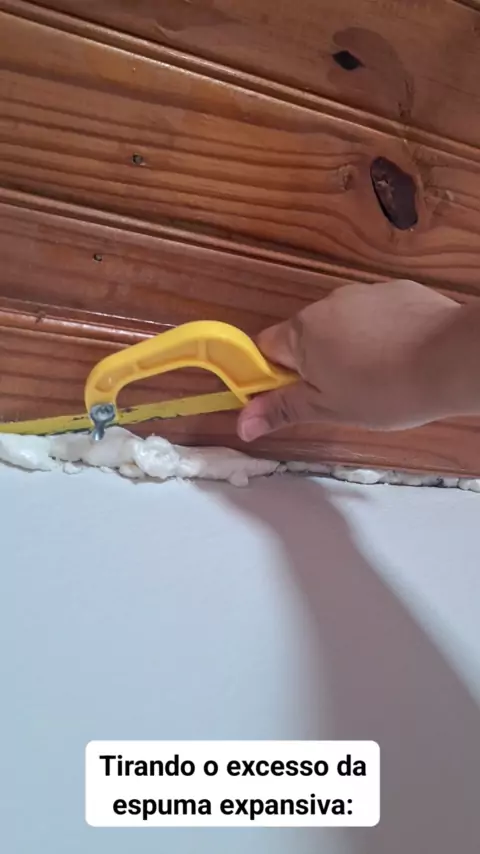 Tirando excesso da espuma expansiva.