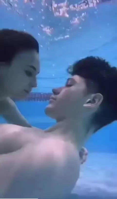 beijo molhado 👩❤️👨🤭 #piscina #casal #kwai #fy