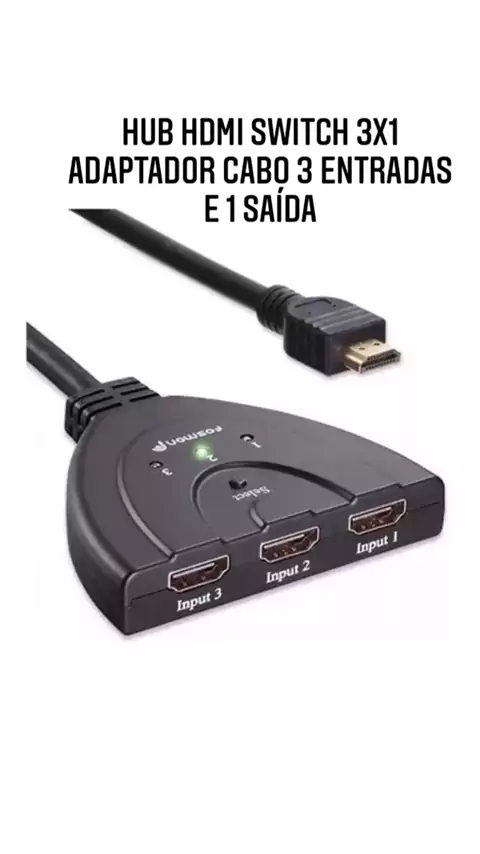 Hub HDMI Switch 3x1 Conecte 3 dispositivos em 1 tela! *Tags* #HubHDMI #Switch #3x1 #HDMI #Multimídia