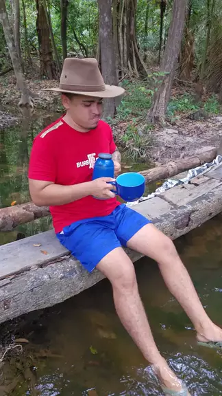 tomando café batizado no garapé