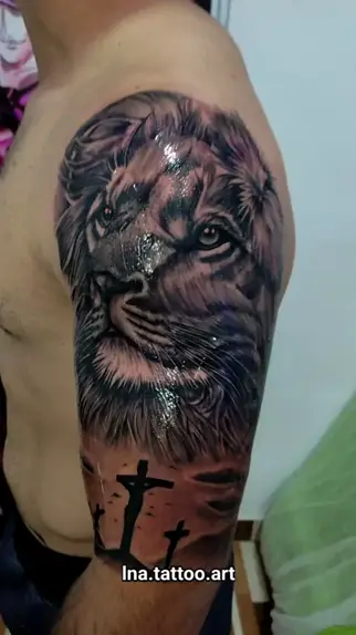 #lnatattooart #fy #lna #foryou #tattoo tattoo leão fechamento da metade do braço.! hehe