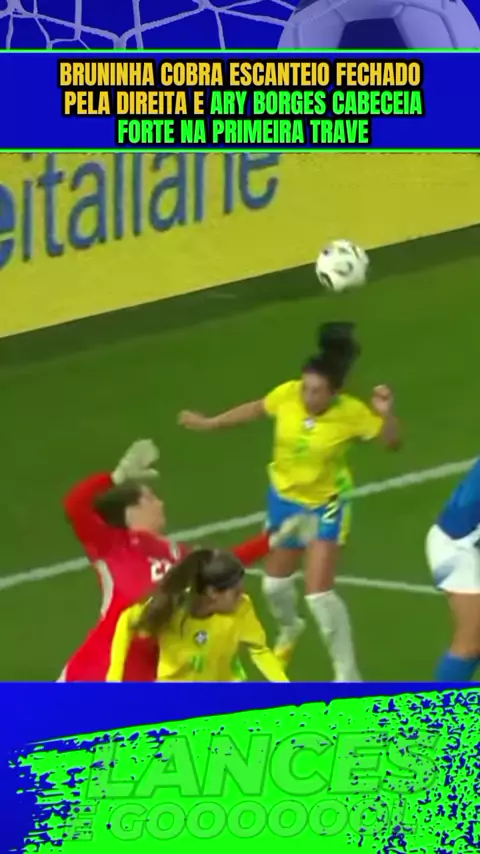 Bruninha cobra escanteio fechado pela direita e Ary Borges cabeceia forte na primeira trave#italia #brasil #italiaxbrasil #amistososdaseleção #esporte