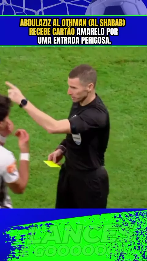 Abdulaziz Al Othman (Al Shabab) recebe cartão amarelo por uma entrada perigosa.#alshabab #alhilal #AlHilalxAlShabab #campeonatosaudita #esporte