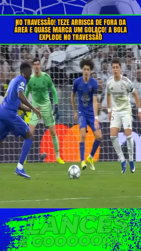 No travessão! Teze arrisca de fora da área e quase marca um golaço! A bola explode no travessão#RealMadridxMonaco #Realmadrid #Monaco #esporte #ligadoscampeões