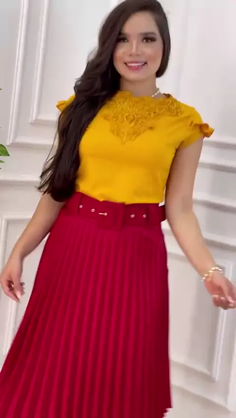 Saia plissada com cinto P M G enviamos para todo o Brasil, por Correios, excursão e transportadora.