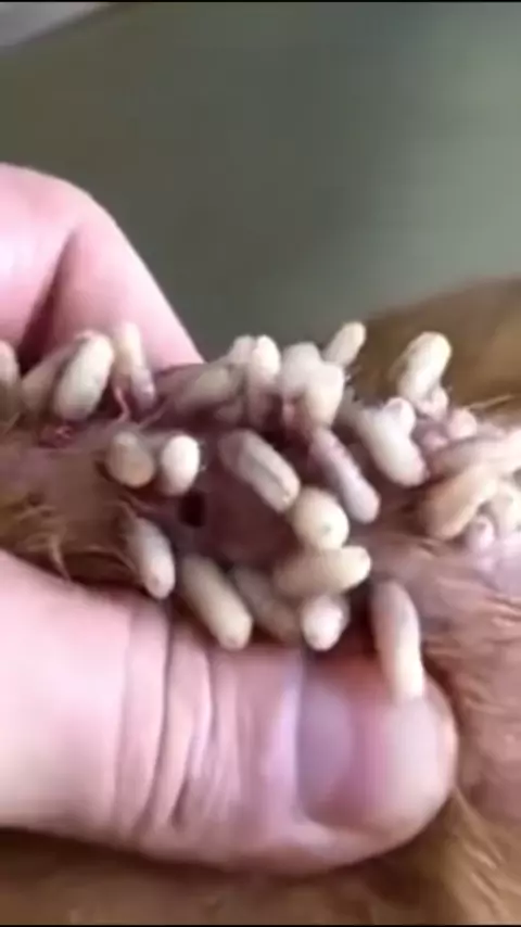 Cão maltratado cheio de parasitas # monstersinsideme # parasitas # dogs # animalsof # satisfying # #