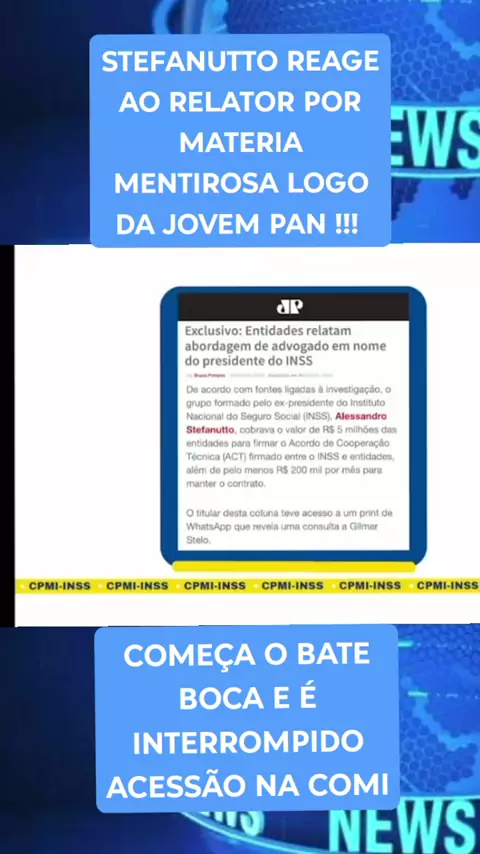 STEFANUTTO REAGE AO RELATOR POR MATERIA MENTIROSA LOGO DA JOVEM PAN !!! #NOTICIA #JORNALISMO #INFORMAÇÕES #CPMINSS #STEFANUTTOREAGECONYRAORELATORCPMIINSS
