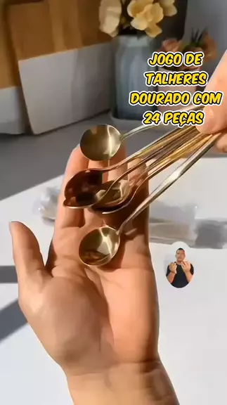 Jogo De Talheres Inox Com 24 Peças Dourado Contém 6 Colheres De Sopa E 6 Garfos E 6 Facas E 6 Colheres De Café Na Cozinha #jogodetalheres