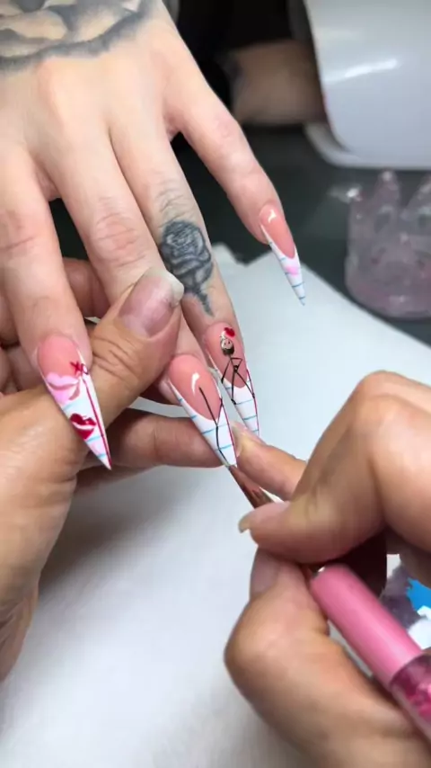 Unhas de papel # uñassanvalentin # nailswithhearts # nailart # uñasacrilicas # uñasdecoradas # longnails # uñaslargas # papernails # longstilettonails # stilletonails # papernails # uñasdecoradas # uñasdepapel