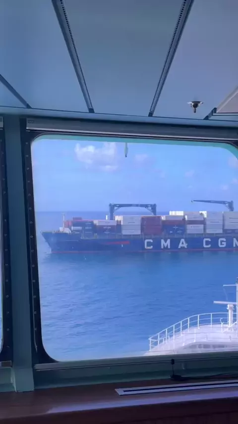 começando o dia com esse navio 🌅 #Navio #mar #oceano #Conteiner