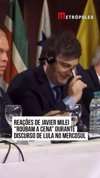 Reações de #JavierMilei “roubam a cena” durante discurso de #Lula no #Mercosul. Presidente argentino levou as mãos ao rosto, sorriu e arqueou sobrancelhas durante a fala do petista. #KwaiNotícias