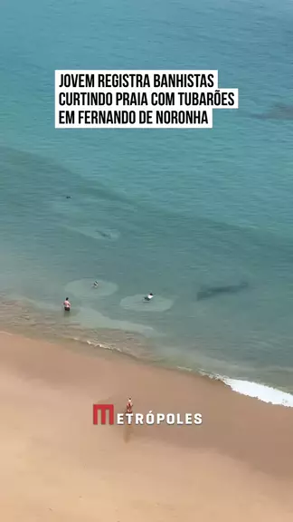 🦈 Rafaela teve a chance de visitar #FernandodeNoronha (PE) e ficou impressionada com a quantidade de tubarões nas praias do arquipélago. No #vídeo publicado nas redes, a moça registra banhistas curtindo a praia tranquilamente enquanto tubarão se aproxima. #KwaiNoticias 📹 @rafaelakazan (ig) | @myhoodbr