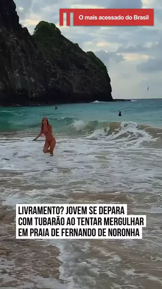 🦈 Uma jovem viu o sangue gelar ao dar de cara com um #tubarão em uma praia de #FernandodeNoronha. Prepara para dar um mergulho na água, ela avistou o animal entre as ondas e recuou rapidamente, com a cara de susto. Em um #vídeo compartilhado nas #redessociais e que viralizou, é possível observar que, além dela, pessoas são vistas ao longe na água, mesmo em meio à presença do tubarão. #KwaiNoticias 🎥 @giuzinhaa (ig) | @myhoodbr