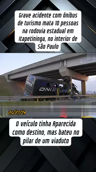 Grave acidente com ônibus de turismo mata 10 pessoas na rodovia estadual em Itapetininga, no interior de São Paulo. O veículo tinha Aparecida como destino, mas bateu no pilar de um viaduto #Notícia #acidente #viral #fy #festakwai