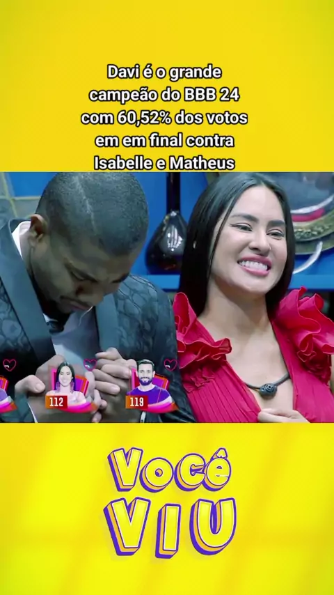 Davi é o grande campeão do BBB 24 com 60,52% dos votos em em final contra Isabelle e Matheus #finaldobbb #kwainobbb #noticiaentretenimento #bbb24 #BomPraKWAI