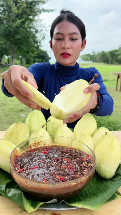 Eating green mango with shrimp pasted #viral