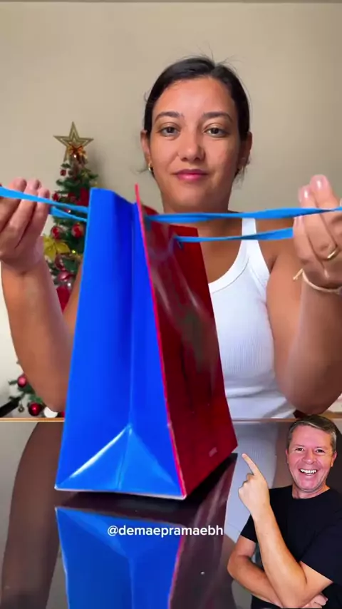 Jeito simples de fechar esse tipo de sacola sem precisar usar fita adesiva🛍️ #presentes