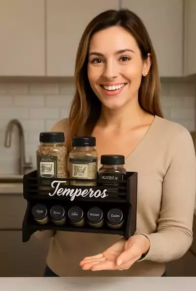 Porta Temperos Mesa Parede 5 Potes com Local Para Colocar Potes de Sal e Cartela de Etiquetas