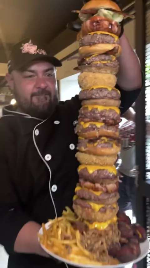 Ricardo Corbucci TORRE DE HAMBÚRGUER VALENDO R$2000!! Feat. @casalnascimentooficial #desafio #challenge #burger #comida #hamburger