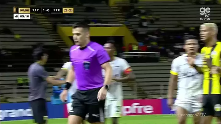 Lance do pênalti marcado para o Strongest. 🇻🇪 Dep. Táchira 1️⃣ 🆚 0️⃣ The Strongest 🇧🇴 LIBERTADORES 🏆 1ª FASE - (VOLTA) | #TACxSTR IDA: 🇻🇪 1️⃣🆚2️⃣ 🇧🇴
