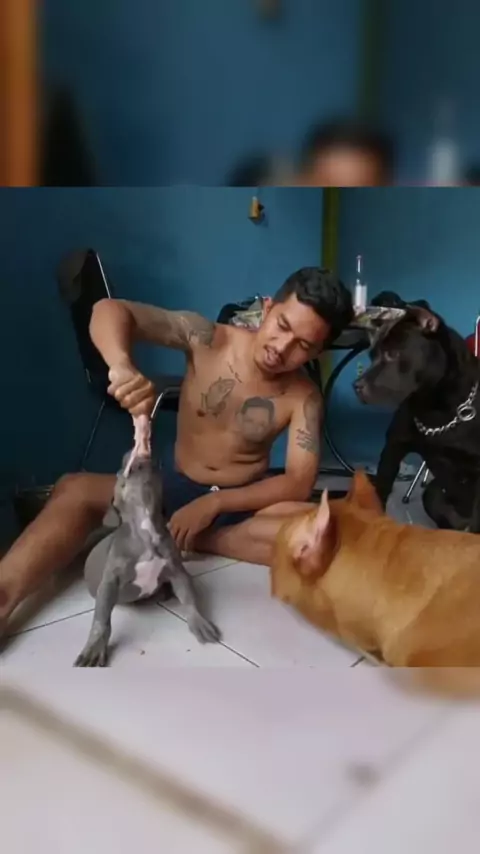 Pitbull puppies - Anjing pitbull umur 1 bulan makan ayam ditemani Pablito and Collin