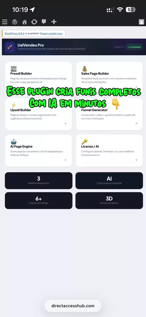 🚀 Criar funil de vendas no WordPress nunca foi tão fácil. A maioria ainda perde horas criando páginas, escrevendo copy e conectando ferramentas. Com o UaiVendeu Pro você cria: ⚡ Presell pages 💰 Sales pages 🔥 Upsell pages 🤖 Copy com IA Tudo dentro do WordPress. Você escolhe: 1️⃣ tipo de página 2️⃣ fonte de tráfego 3️⃣ produto E o plugin cria o funil. 👇 Quer o plugin? Comenta FUNIL que eu te envio o link. ⸻ #marketingdigital #wordpress #funildevendas #afiliados
