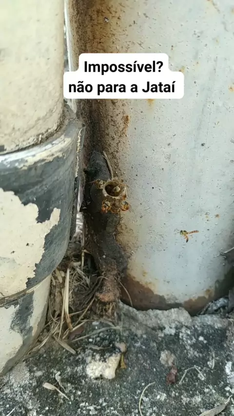 A gente não vê espaço, mais as Jataís sempre nos surpreende com os locais que escolhem para se instalar #abelhasnativas #abelhajatai