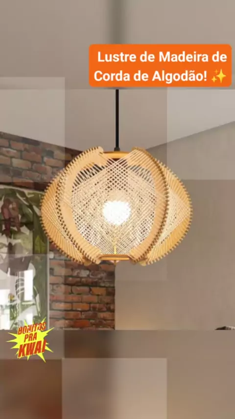 Lustre de Madeira de Corda de Algodão Tecido à Mão Teto Ajustável em altura . #lustre #madeira #tecido #decor #casa Gostou? comenta "EU QUERO" que te envio o Link! 😉