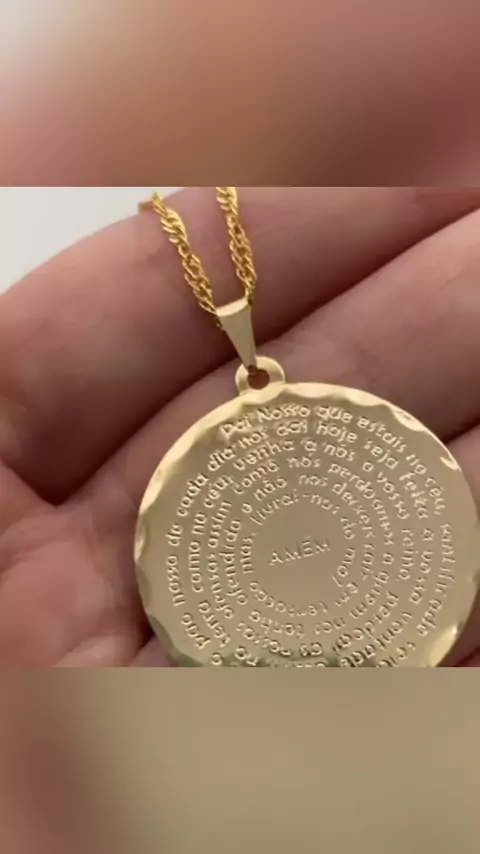 Colar Corrente Folheado a Ouro 18K Pingente Medalha Oração do Pai Nosso