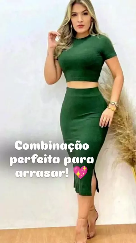 Escolha o seu look e brilhe onde estiver! Link na bio! ✨🛍️ #ModaFeminina #LookDoDia #CroppedSaia #ConjuntoCanelado #EstiloMinimalista