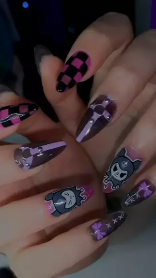Minhas unhas da Kuromi, tô apaixonada, o que vocês acharam? 💜 #nails #kuromi #sanrio