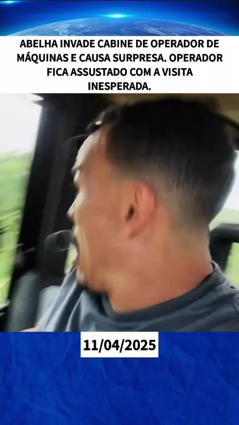 Abelha invade cabine de operador de máquinas e causa surpresa. Operador fica assustado com a visita inesperada. #Notícia #BomPraKWAI #ÚltimasNoticias