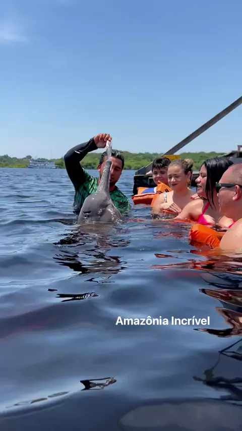 Nadando com os botos na Amazônia.