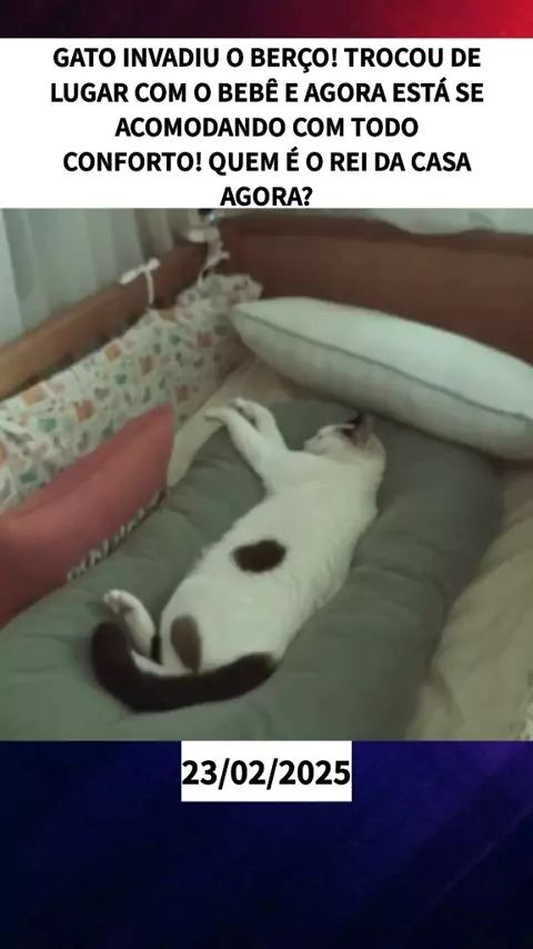 Gato invadiu o berço! Trocou de lugar com o bebê e agora está se acomodando com todo conforto! Quem é o rei da casa agora? #Notícia #BomPraKWAI #ultimasnoticias