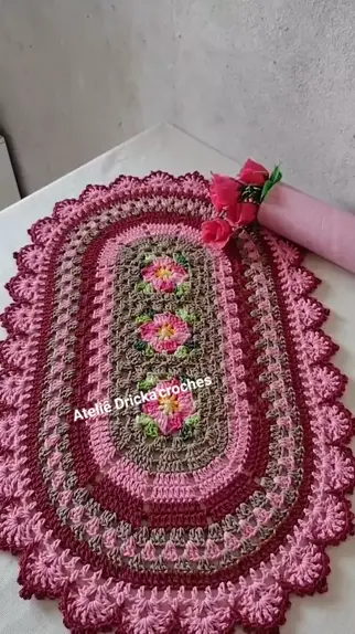 Feliz aquele que faz arte com as mãos! ❣️❤️ Este modelo simplesmente fica lindo em qualquer combinação de cores ❤️ .#crochezinho #crochêdeluxo #tapetecoloridodecroche #artesanatodeluxo #artesãs