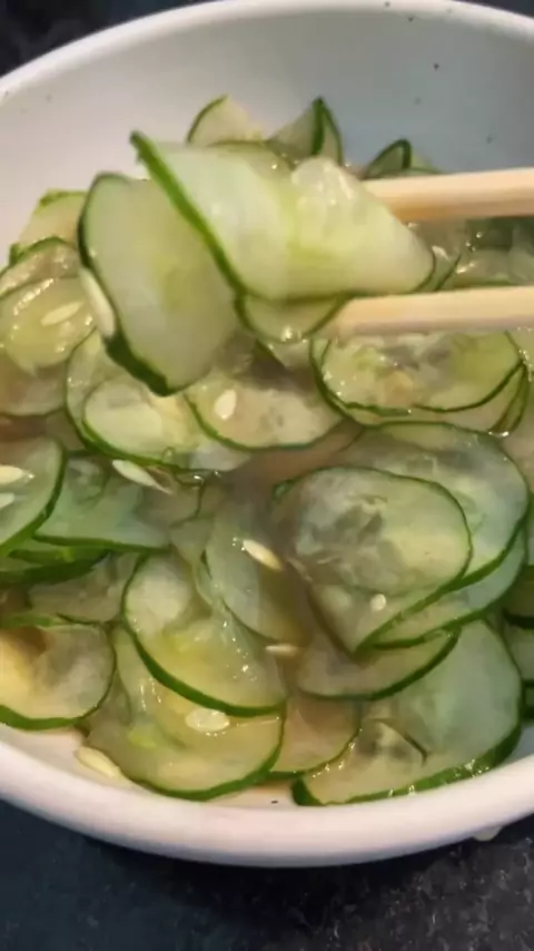 SUNOMONO 🥒 Já comeu? É uma saladinha de pepino Japonesa, febre nos restaurantes, e eu vou te ensinar a fazer agora! Anota aí: 1 pepino japonês Sal Água quente 1 colher de sopa de açúcar (usei mascavo mas pode ser qualquer uma) 3 colheres de vinagre (qualquer um também) O passo a passo tá no vídeo! O pepino fica com um gostinho suave e ácido ao mesmo tempo, bom demais! Só façam!!! 💚🥒 #receita #salad #salada #sunomono #Japones