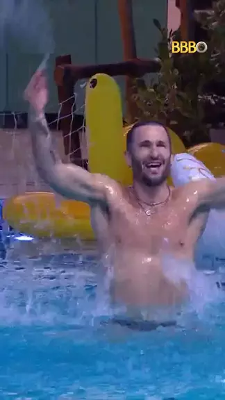 E TCHIBUUUM! 💦 Diego Hypolito caiu com tudo na piscina durante a Pool Party do #BBB25 🤩 Acompanhe as câmeras 24h no @globoplay! #RedeBBB