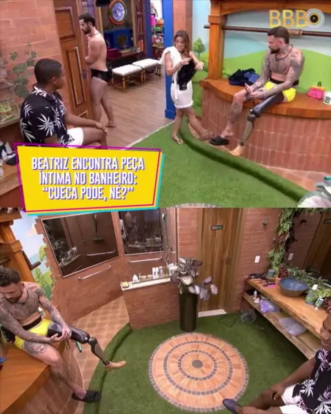#BBB24 📹 • Em conversa, Beatriz questiona Vinicius e Davi sobre cueca deixada no banheiro da casa. Há pouco tempo, uma peça íntima que Beatriz teria deixado no cômodo foi alvo de reclamação 👀 Confira o papo completo no link da bio. 📲 #RedeBBB