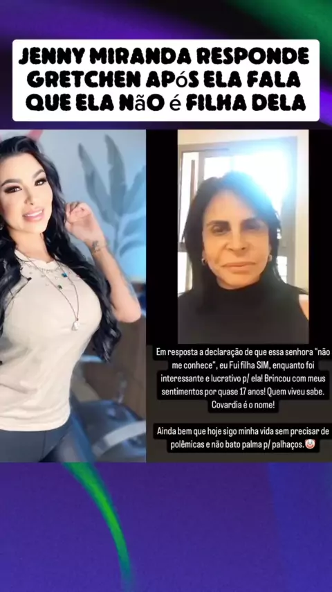 Jenny Miranda responde Gretchen após ela fala que ela não é filha dela #ultimasnoticias #fofoca #noticias #jennymiranda #gretchen