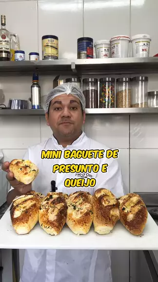 Mini baguete de presunto com queijo #baguete #queijo #receita