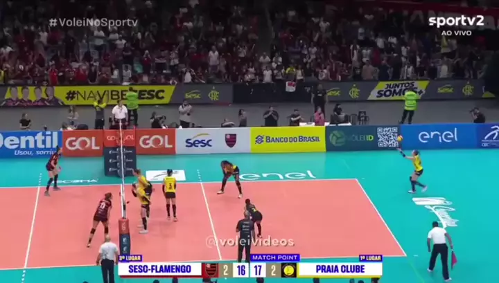 Depois de começar a perder por 2 sets a 0 o Praia Clube vira e derrota o Sesc Flamengo na casa do adversário. Caffrey foi decisivo em vários momentos. 👏 🎥@sportv #volei #voleibol #vídeosdevolei